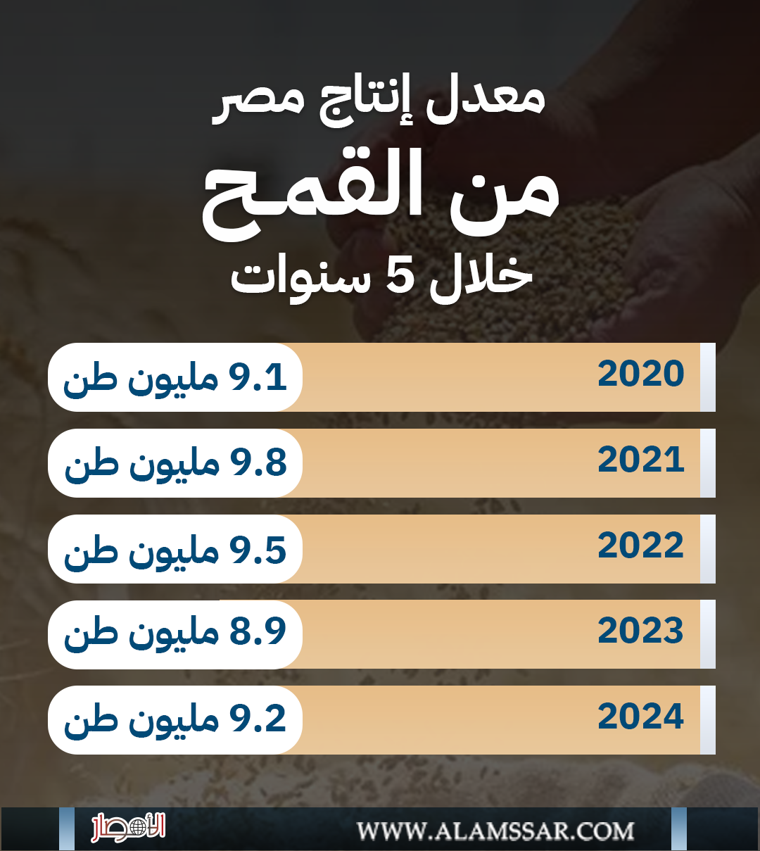 إنفوجراف.. معدل إنتاج مصر من القمح خلال 5 سنوات
