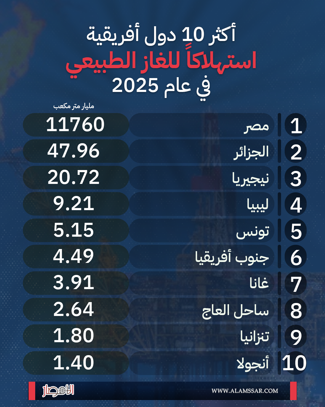 إنفوجراف |أكثر 10 دول أفريقية استهلاكاً للغاز الطبيعي في عام 2025