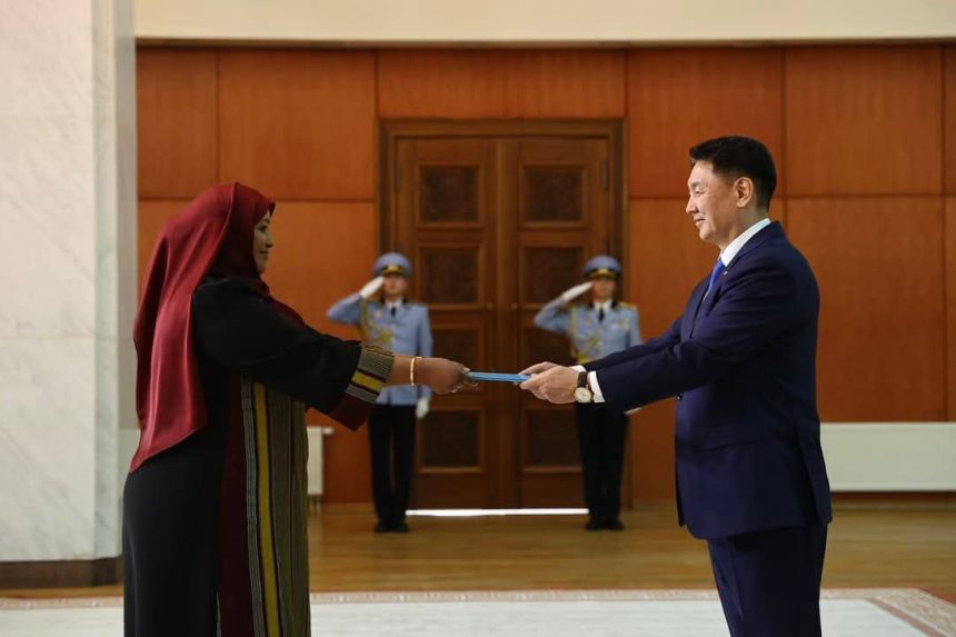 سفيرة الصومال لدى منغوليا تسلم أوراق اعتمادها الى الرئيس المنغولي