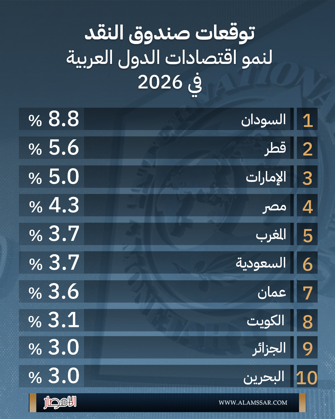 إنفوجراف.. توقعات صندوق النقد الدولي لنمو اقتصادات الدول العربية في 2026