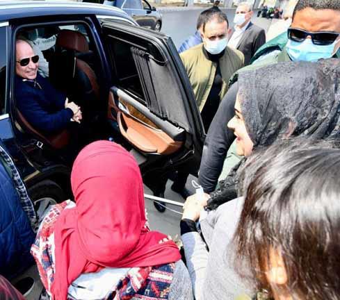 وحرص الرئيس السيسي، على التوقف لتبادل الحديث مع المواطنيين والأسر التي تصادف وجودهم أثناء مروره، حيث هنأهم بمناسبة قرب حلول شهر رمضان المعظم، كما استفسر عن أحوالهم المعيشية، واستمع لمطالبهم