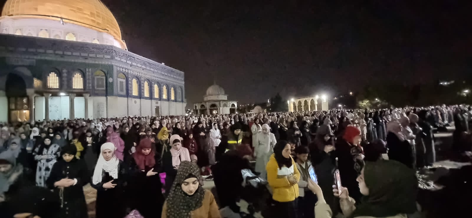 وقالت دائرة الأوقاف الإسلامية في مدينة القدس المحتلة، إن أكثر من 100 ألف مصل أدوا صلاتي العشاء والتراويح بالمسجد الأقصى رغم إجراءات الاحتلال المشددة، واقتحام قوات الاحتلال المسجد منذ ساعات الفجر.