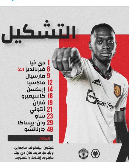 التشكيل الرسمي لمانشستر يونايتد لمواجهة وولفرهامبتون في الدوري الإنجليزي