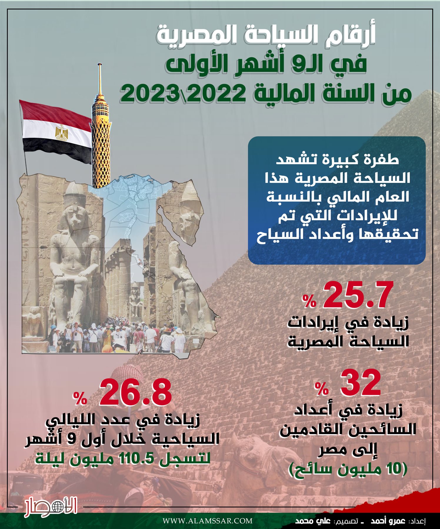 انفوجراف| أرقام السياحة المصرية في الـ9 أشهر الأولى من 2022\2023