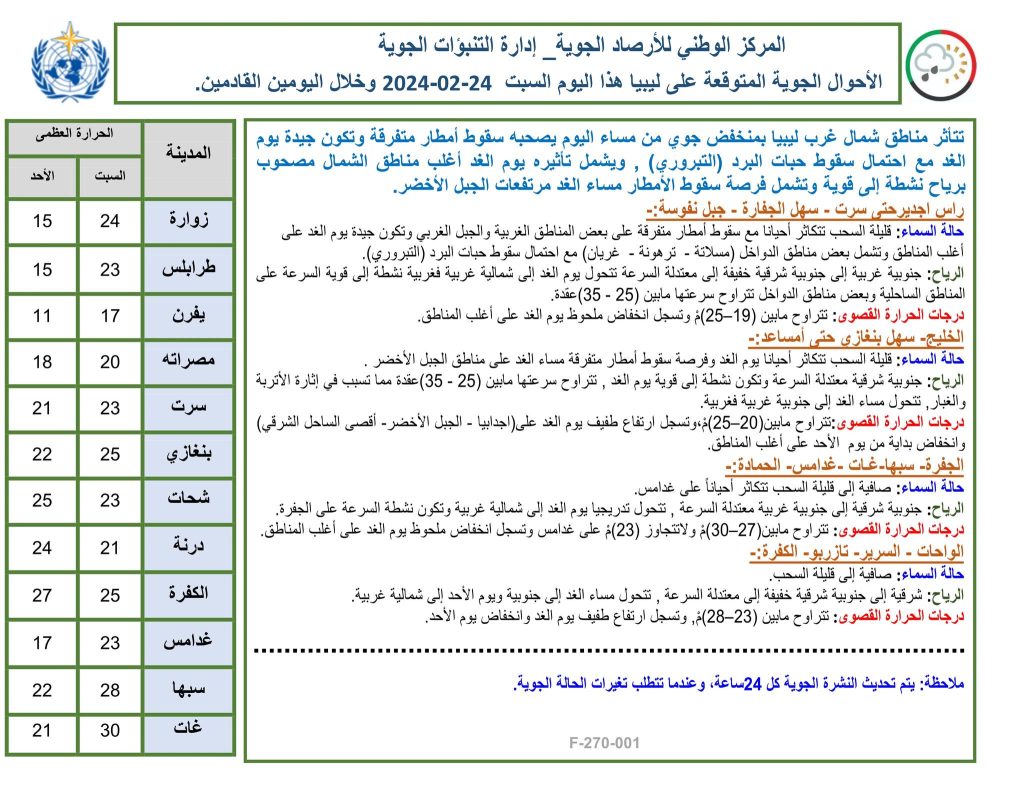 حالة الطقس في ليبيا اليوم السبت 24 فبراير 2024