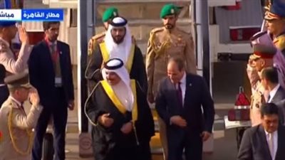 استقبل الرئيس عبدالفتاح السيسي، ملك البحرين حمد بن عيسى، في مطار القاهرة، ووصل ملك البحرين قصر الاتحادية في القاهرة بمراسم استقبال رسمية ورفع الأعلام.