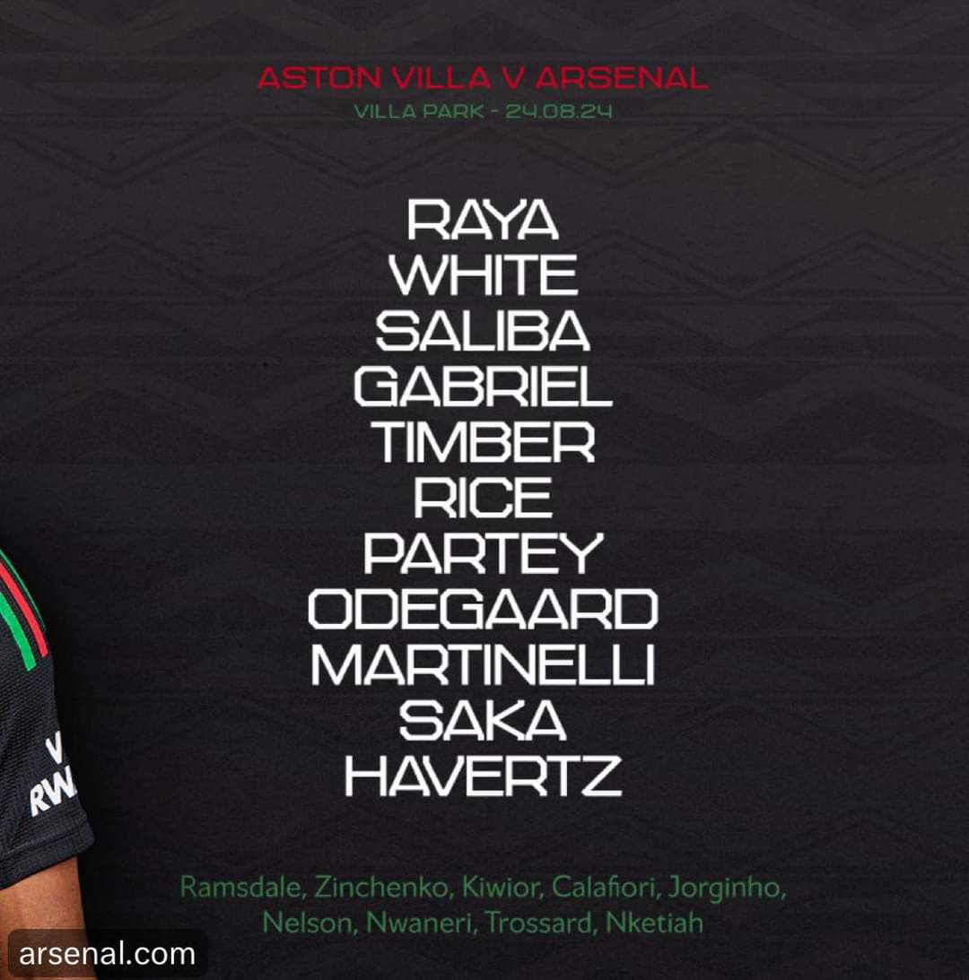 ساكا يقود هجوم آرسنال لمواجهة أستون فيلا في الدوري الإنجليزي