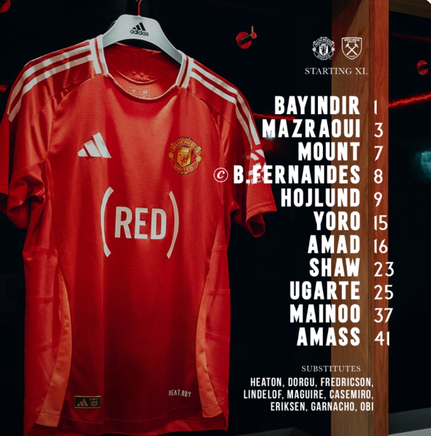 التشكيل الرسمي لمانشستر يونايتد لمواجهة وست هام في الدوري الإنجليزي