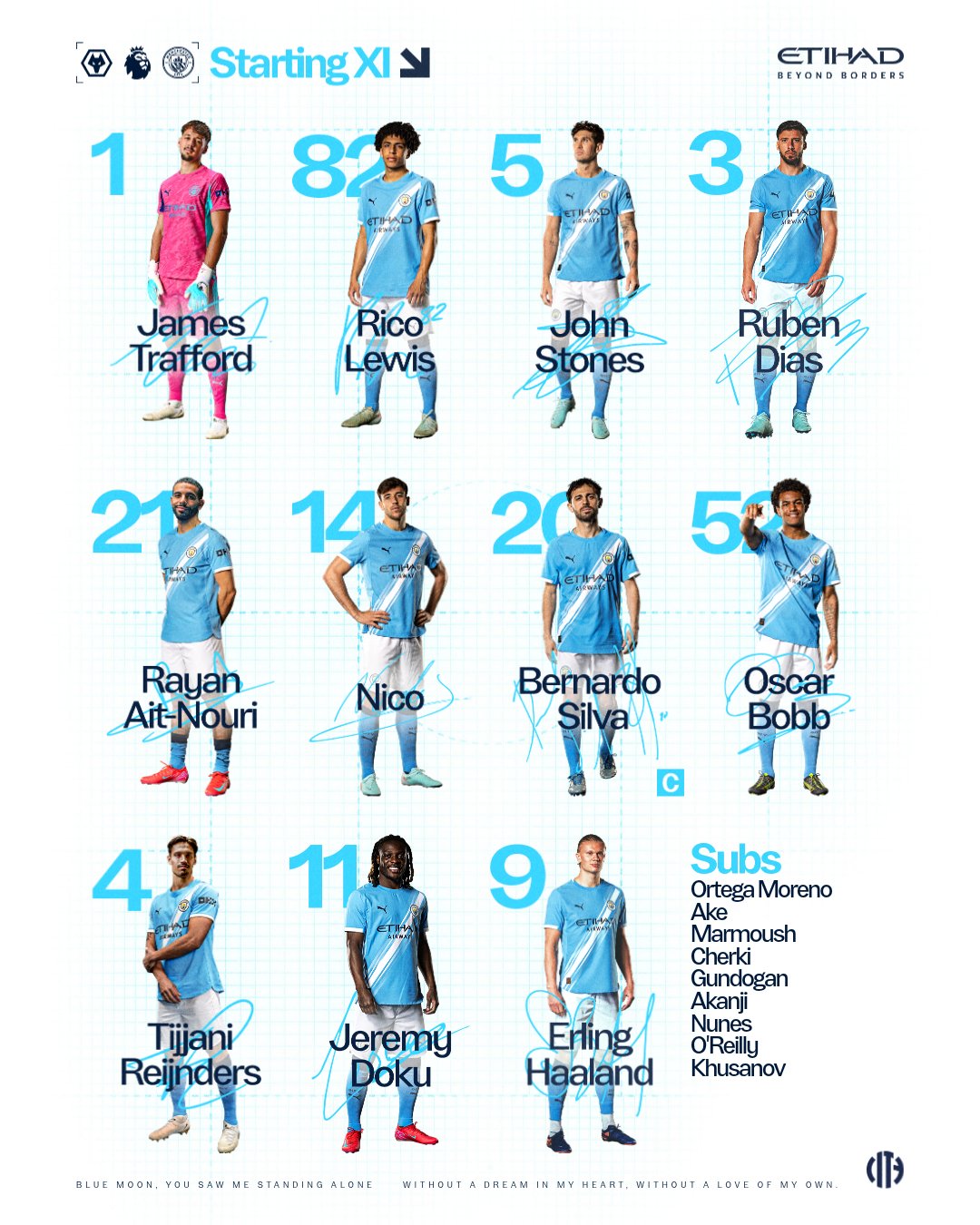 التشكيل الرسمي لفريق مانشستر سيتي أمام وولفرهامبتون في الدوري الإنجليزي