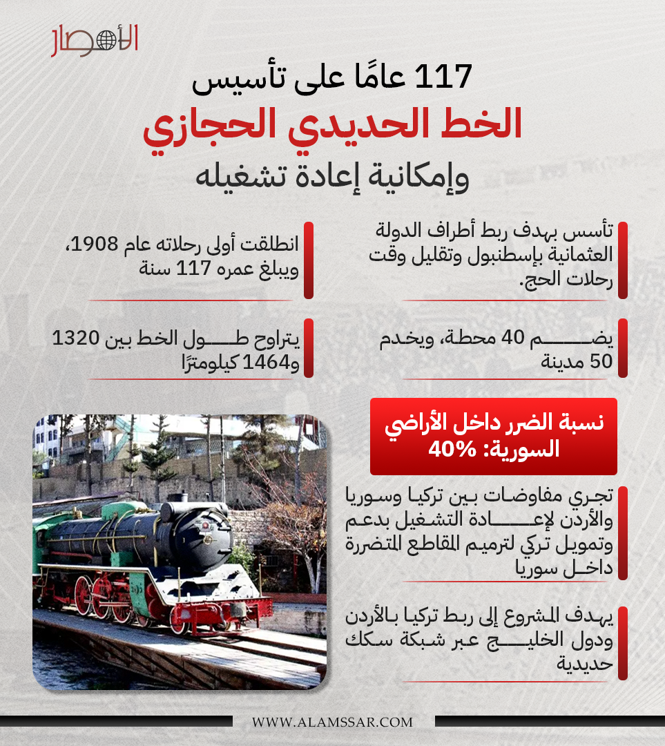 انفوجراف.. 117 عامًا على تأسيس الخط الحديدي الحجازي وإمكانية إعادة تشغيله