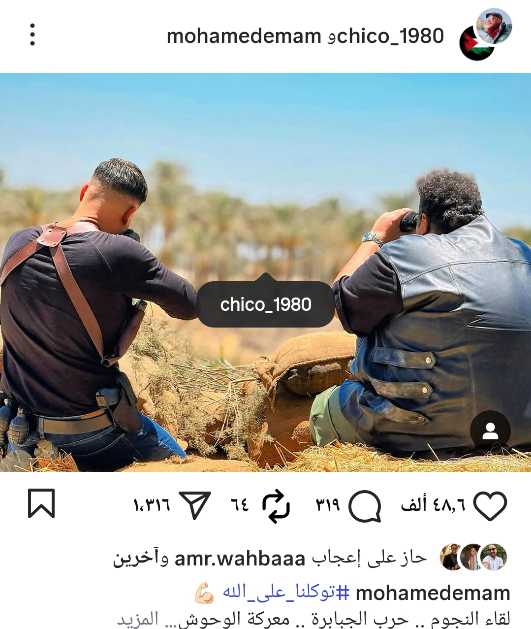 ونشرها محمد امام الصورة عبر حسابه الرسمي على موقع «إنستجرام»، وعلّق قائلًا: «لقاء الوحوش.. حرب الجبابرة.. معركة النجوم،صقر_وكناريا، أقوى مفاجأة سينمائية إن شاء الله.. قريبًا بس مش أوي».