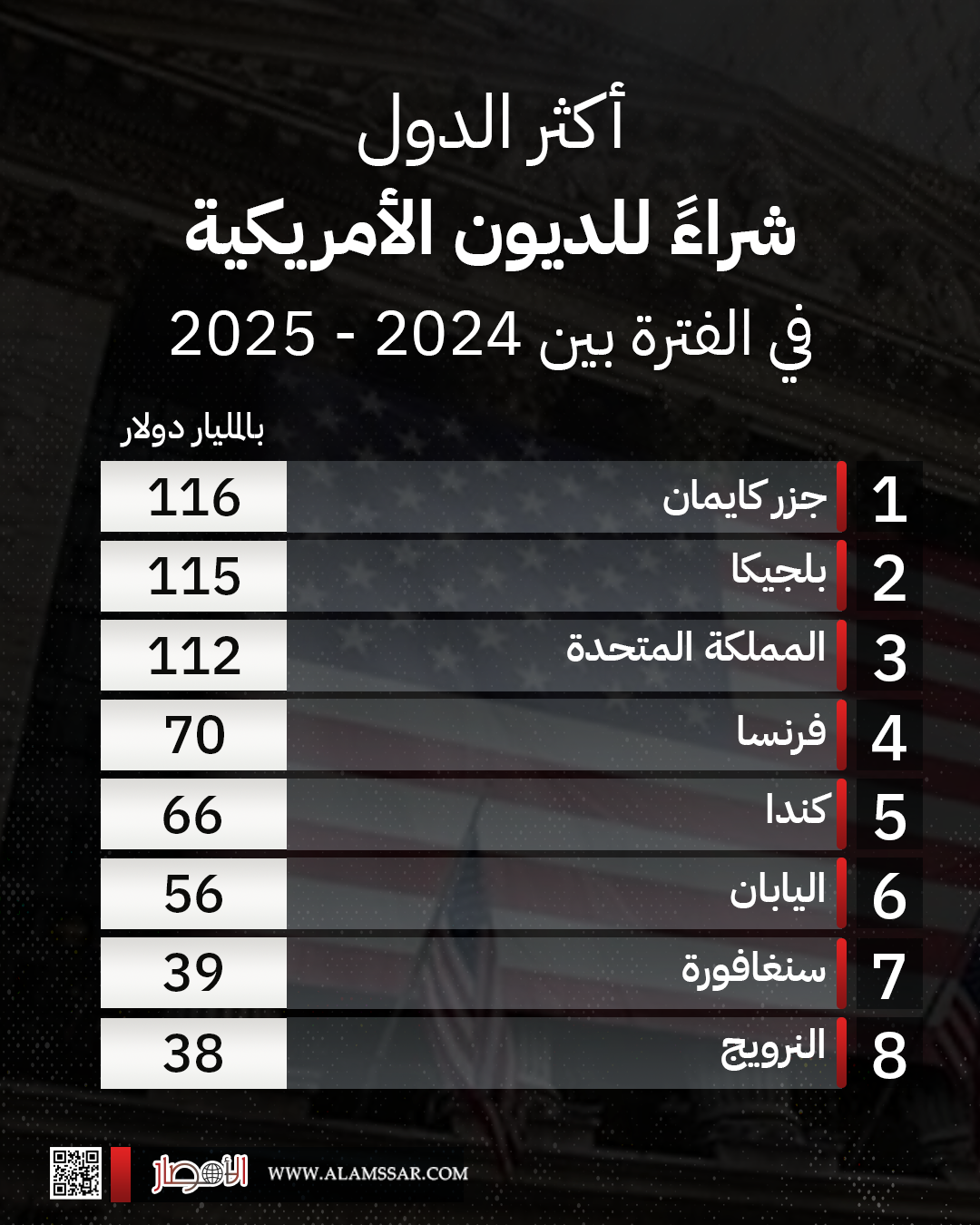 انفوجراف.. أكثر الدول شراءً للديون الأمريكية في الفترة بين 2024 - 2025