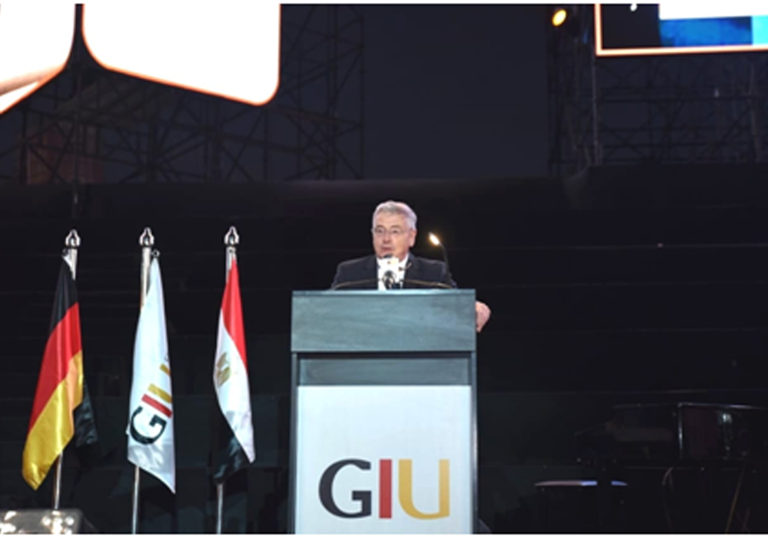ومن جانبه، عبّر السيد يوليوس جورج لوي، رئيس مجلس أمناء الجامعة الألمانية الدولية، عن سعادته بتخريج الدفعة الثالثة من طلاب الجامعة، مستعيدًا ذكريات تأسيسها قائلاً : دعوني أعود بكم إلى شهر فبراير عام 2019، اليوم الذي شهد لحظة ميلاد الجامعة الألمانية الدولية بحضور نخبة من المسؤولين المصريين والألمان لوضع حجر الأساس ، كنا آنذاك في قلب الصحراء الشاسعة، نحتفل داخل خيمة مؤقتة ضخمة نُصبت وسط مساحات هائلة من الرمال. كانت الخيمة، والضيوف، وحجر الأساس، هم العلامات الوحيدة التي تلوح في الأفق. واليوم، وبعد مرور ست سنوات ونصف فقط، نقف على أرض تغيّر وجهها بالكامل. فعند الوصول إلى العاصمة الإدارية الجديدة، تستقبلكم الجامعة الألمانية الدولية بمبانيها المتألقة كجوهرة معمارية مغطاة بالنحاس تزيّن الأفق، بجوار أبرز معالم منطقة الأعمال المركزية من البرج الأيقوني، والكاتدرائية والمساجد، مرورًا بالمونوريل وشبكة الطرق المتطورة التي تجسّد ملامح نهضة مصر الحديثة."