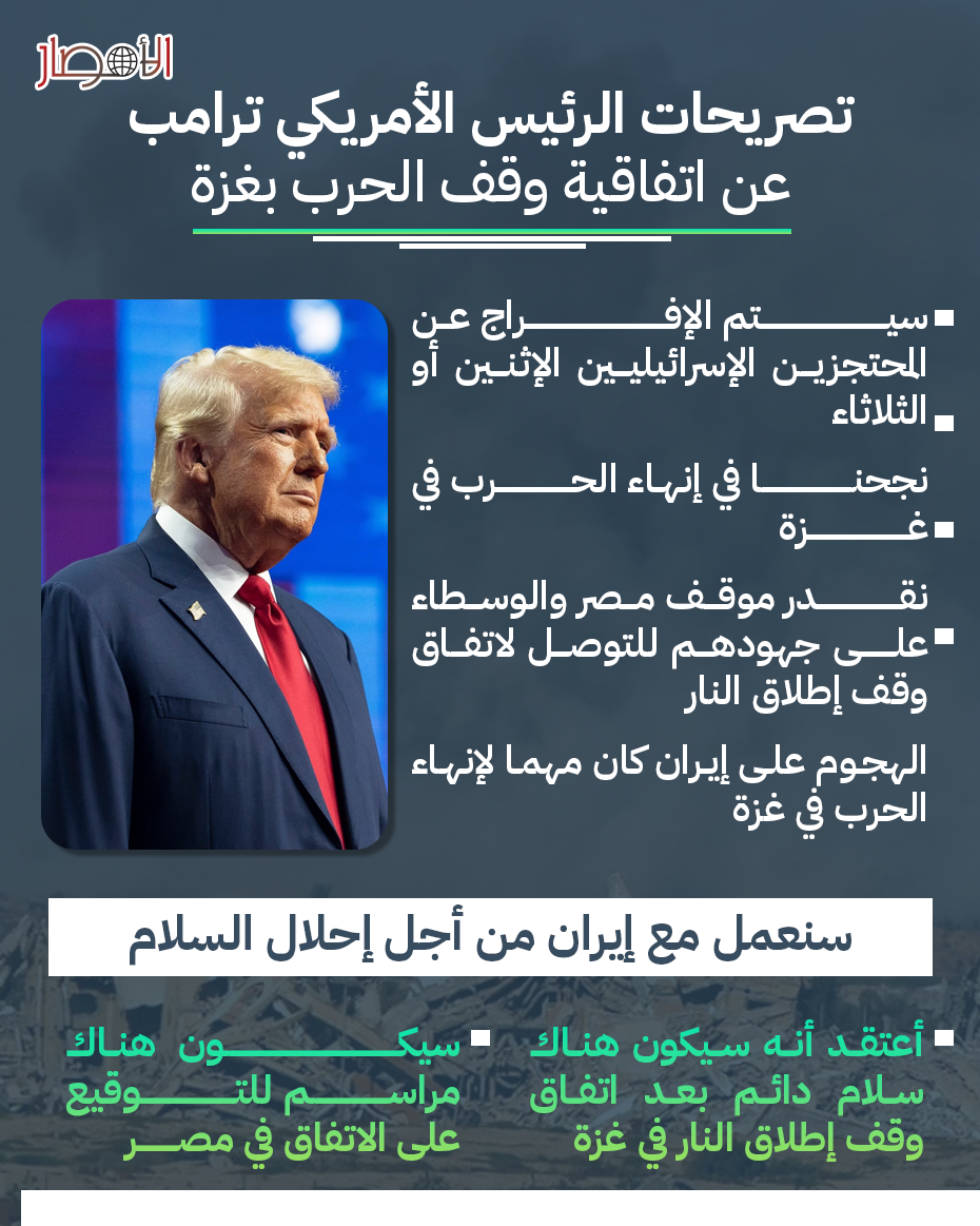 بالانفوجراف| تصريحات ترامب حول اتفاقية وقف الحرب في غزة