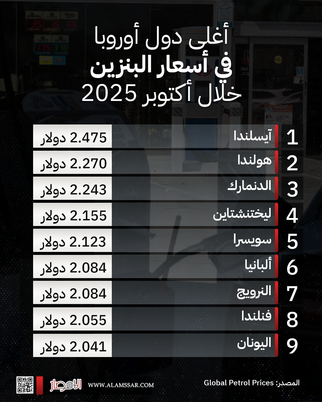 انفوجراف.. أغلى دول أوروبا في أسعار البنزين خلال أكتوبر 2025