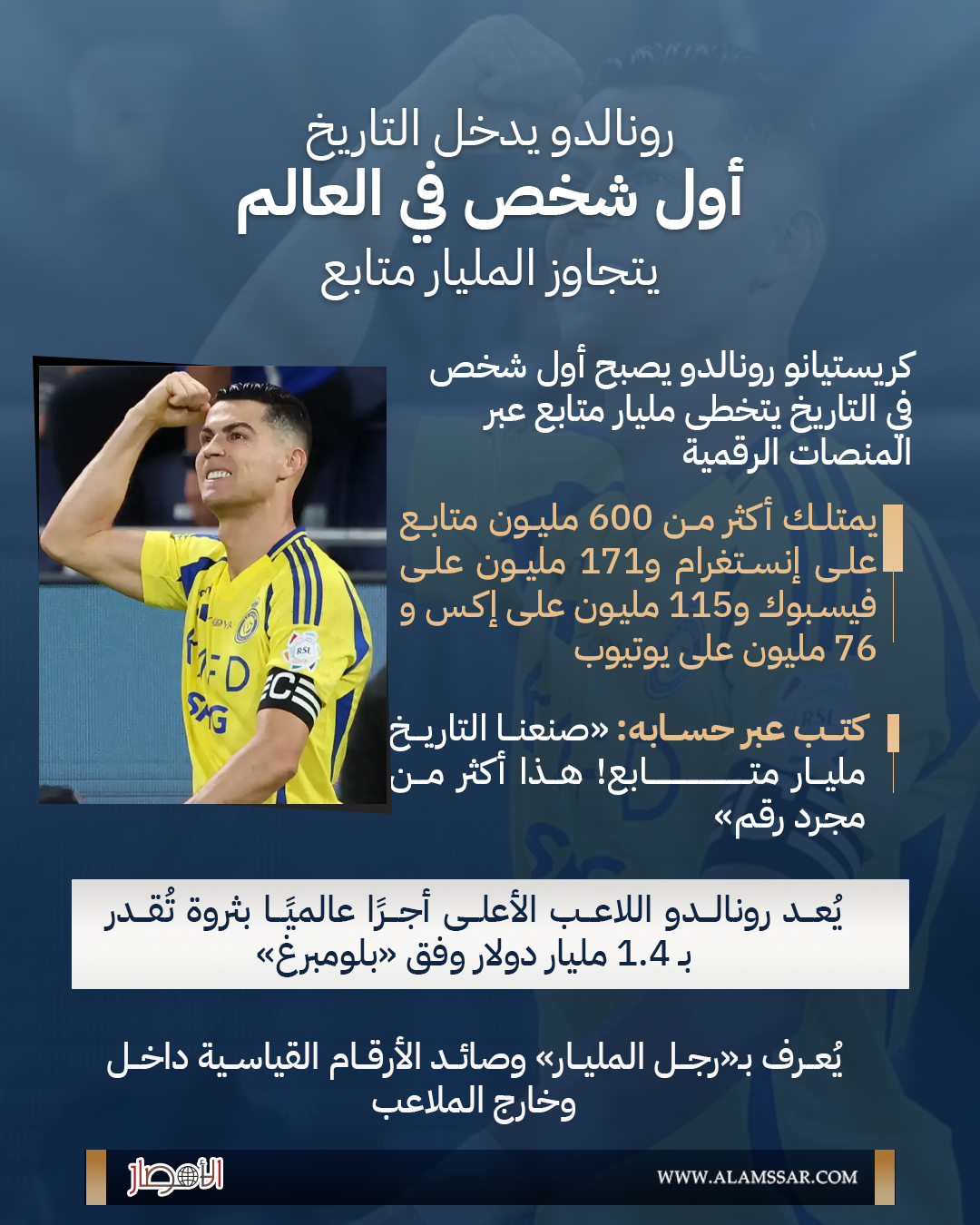 بالإنفوجراف| رونالدو يدخل التاريخ.. أول شخص في العالم يتجاوز المليار متابع