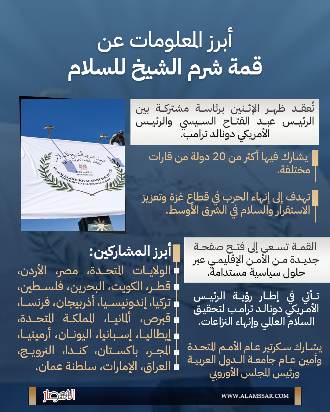 انفوجراف.. أبرز المعلومات عن قمة شرم الشيخ للسلام
