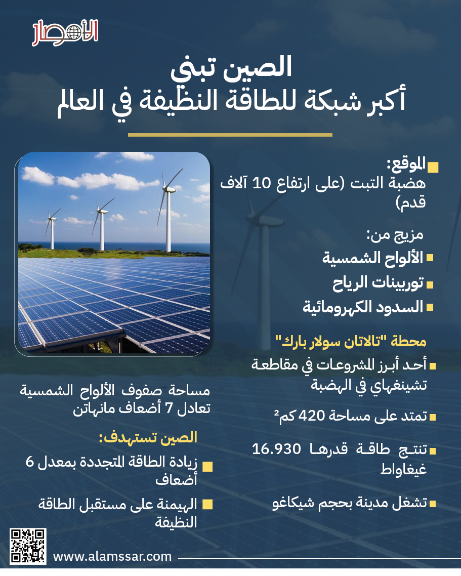 بالإنفوجراف.. الصين تبني أكبر شبكة للطاقة النظيفة في العالم