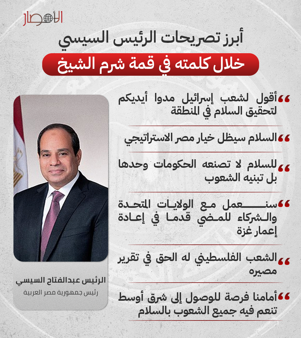بالإنفوجراف.. أبرز تصريحات الرئيس السيسي خلال كلمته في قمة شرم الشيخ