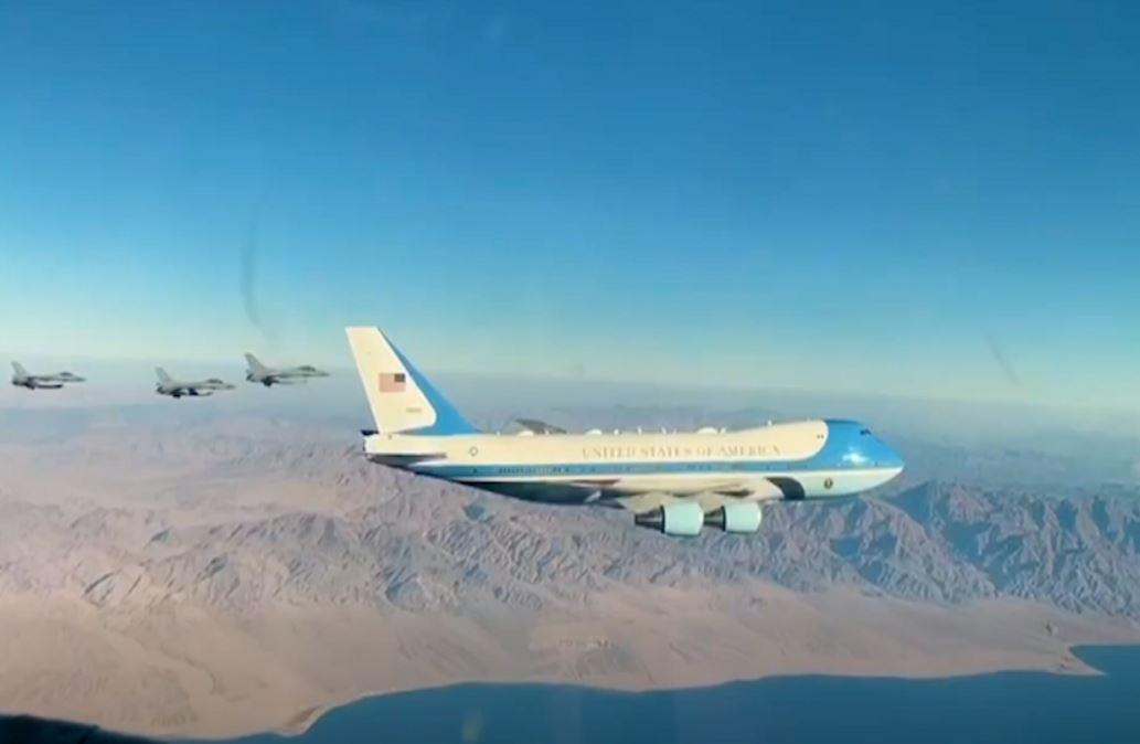ويُظهر الفيديو تواصلاً صوتيًا بين قائد السرب المصري من طراز F-16 الذي تولى مهمة الاستقبال، وطاقم الطائرة الرئاسية الأمريكية.