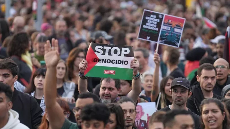 شهدت عشرات المدن فى إسبانيا مظاهرات حاشدة وإضرابا عاما دعما للشعب الفلسطيني، واحتجاجات على الهجمات الإسرائيلية على غزة خلال العامين الماضيين، وقد شارك فى هذه التحركات آلاف العمال والطلبة بينما سجلت قوات الأمن اعتقالات واندلاع أعمال شغب فى بعض المناطق.