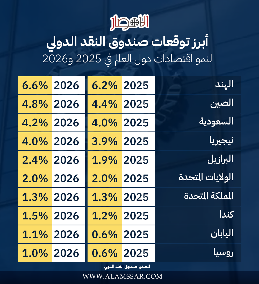 أبرز توقعات صندوق النقد الدولي لنمو اقتصادات دول العالم في 2025 و2026