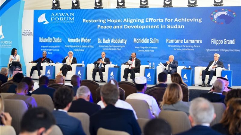شارك وزير الخارجية المصري الدكتور بدر عبد العاطي، في جلسة بعنوان "استعادة الأمل: مواءمة الجهود المبذولة لتحقيق السلام والتنمية في السودان"، وذلك ضمن أعمال النسخة الخامسة من منتدى أسوان للسلام والتنمية المستدامة، الذي تستضيفه جمهورية مصر العربية بمشاركة واسعة من مسؤولين دوليين وإقليميين.