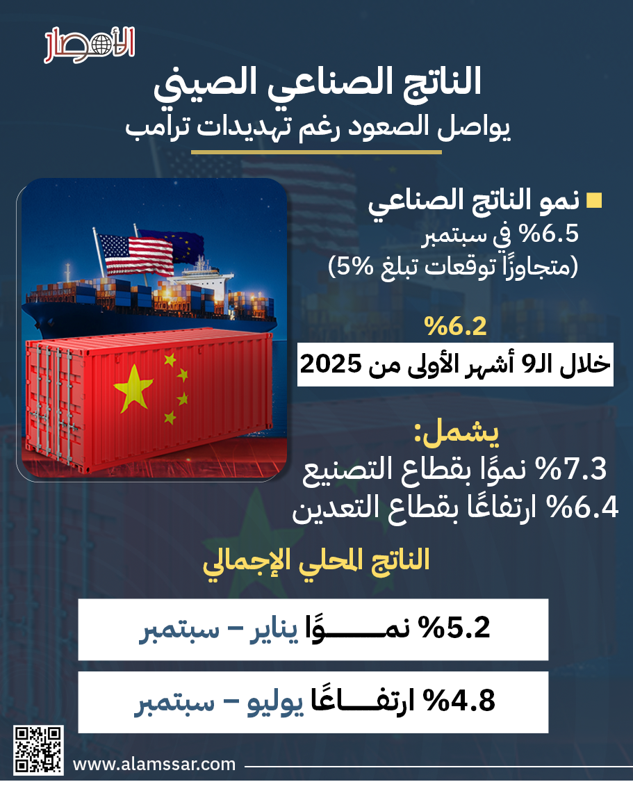 انفوجراف| بالأرقام.. الناتج الصناعي الصيني يواصل الصعود رغم تهديدات ترامب