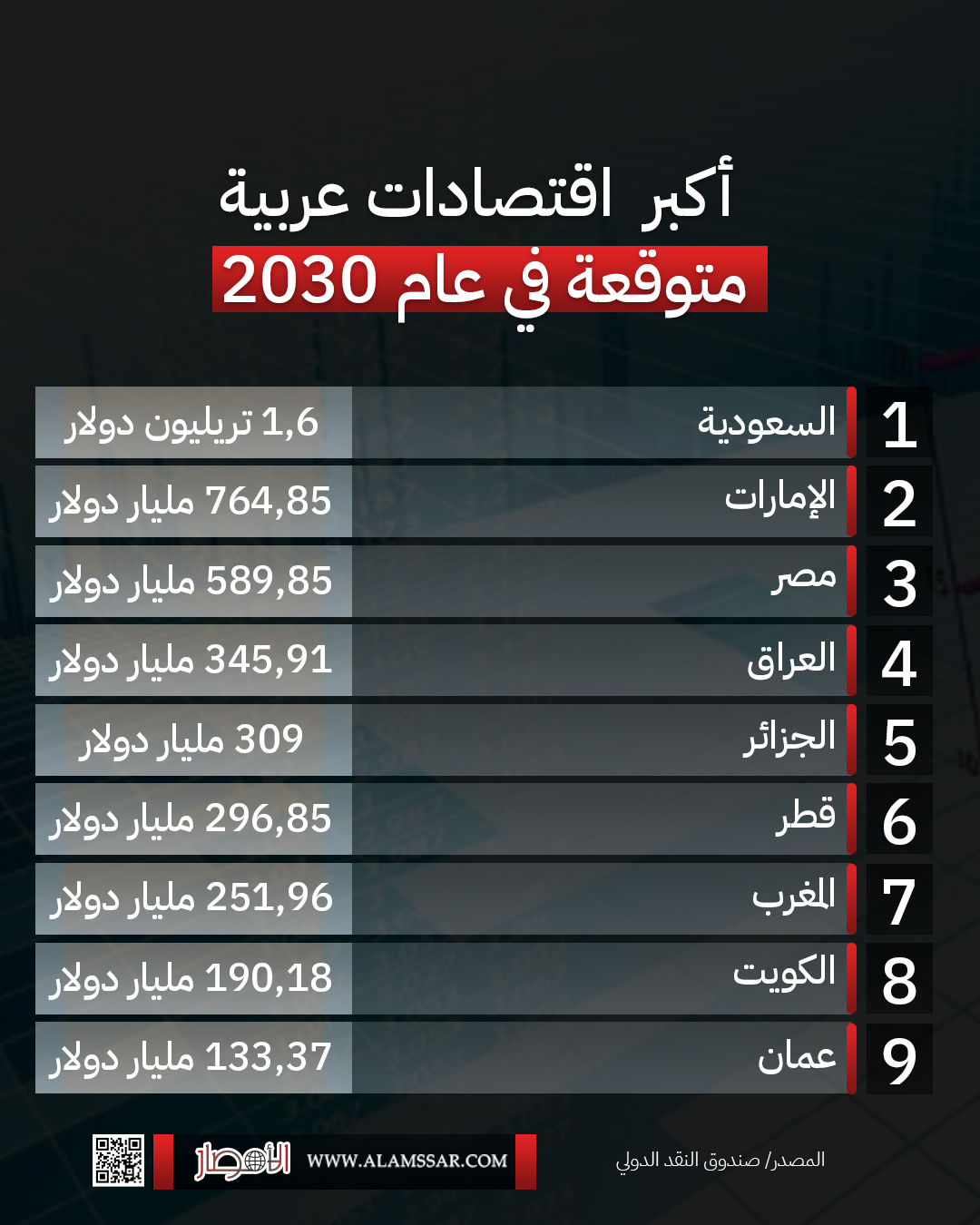إنفوجراف.. أكبر اقتصادات عربية متوقعة في عام 2030