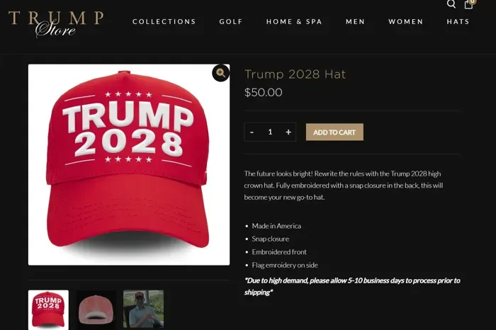 في السياق نفسه، يُواصل متجر ترامب الإلكتروني بيع قبعات حمراء وقمصان تحمل شعار «ترامب 2028»، حيث بلغت سعر القبعات (50 دولارًا)، وفقًا لموقع «بوليتيكو»، في مؤشر على استمرار الترويج لمستقبله السياسي المُحتمل.