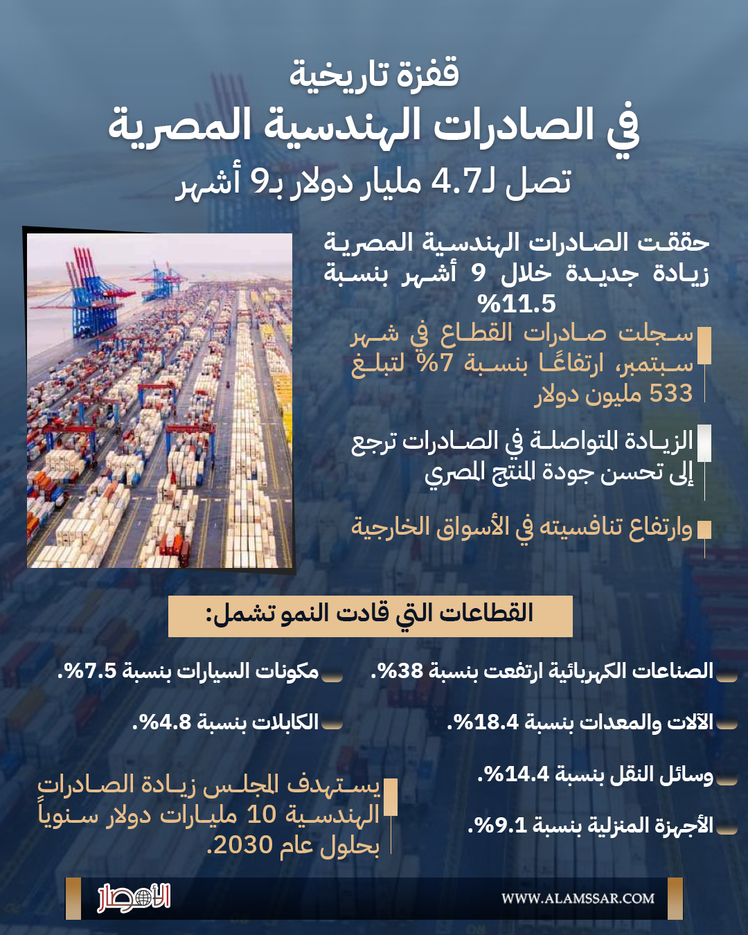 بالإنفوجراف.. قفزة تاريخية في الصادرات الهندسية المصرية تصل لـ4.7 مليار دولار