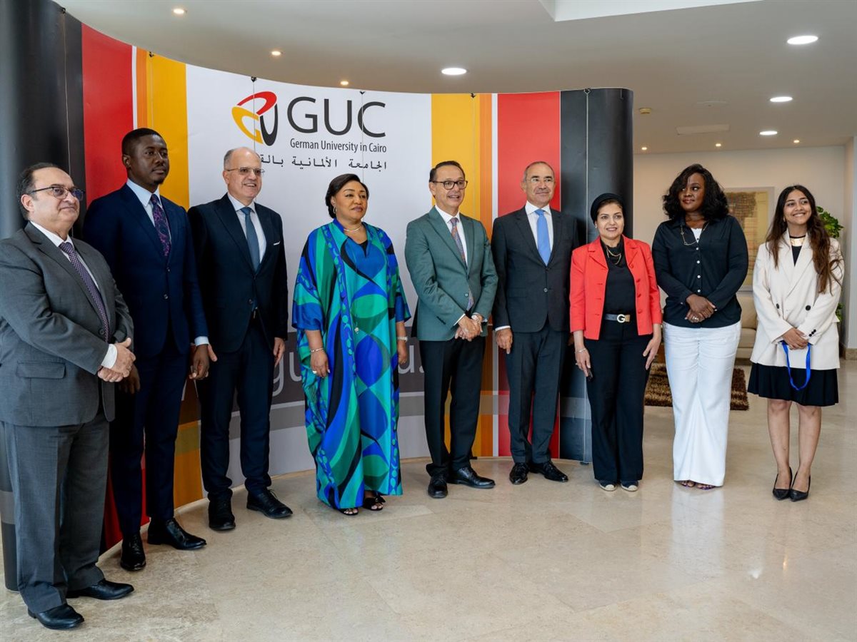 وفي كلمته، أعرب الدكتور أشرف منصور عن اعتزازه بالعلاقات الأكاديمية الممتدة بين الجامعة ودول إفريقيا، مؤكداً أن الجامعة الألمانية بالقاهرة ستظل دائماً منصة للمتميزين والمتفوقين من مصر والقارة والعالم. وأوضح أن الجامعة تمتلك سمعة أكاديمية مرموقة وبرامج دراسية متنوعة تؤهل خريجيها للانخراط بفعالية في أسواق العمل الدولية ومؤسساتها الرائدة.