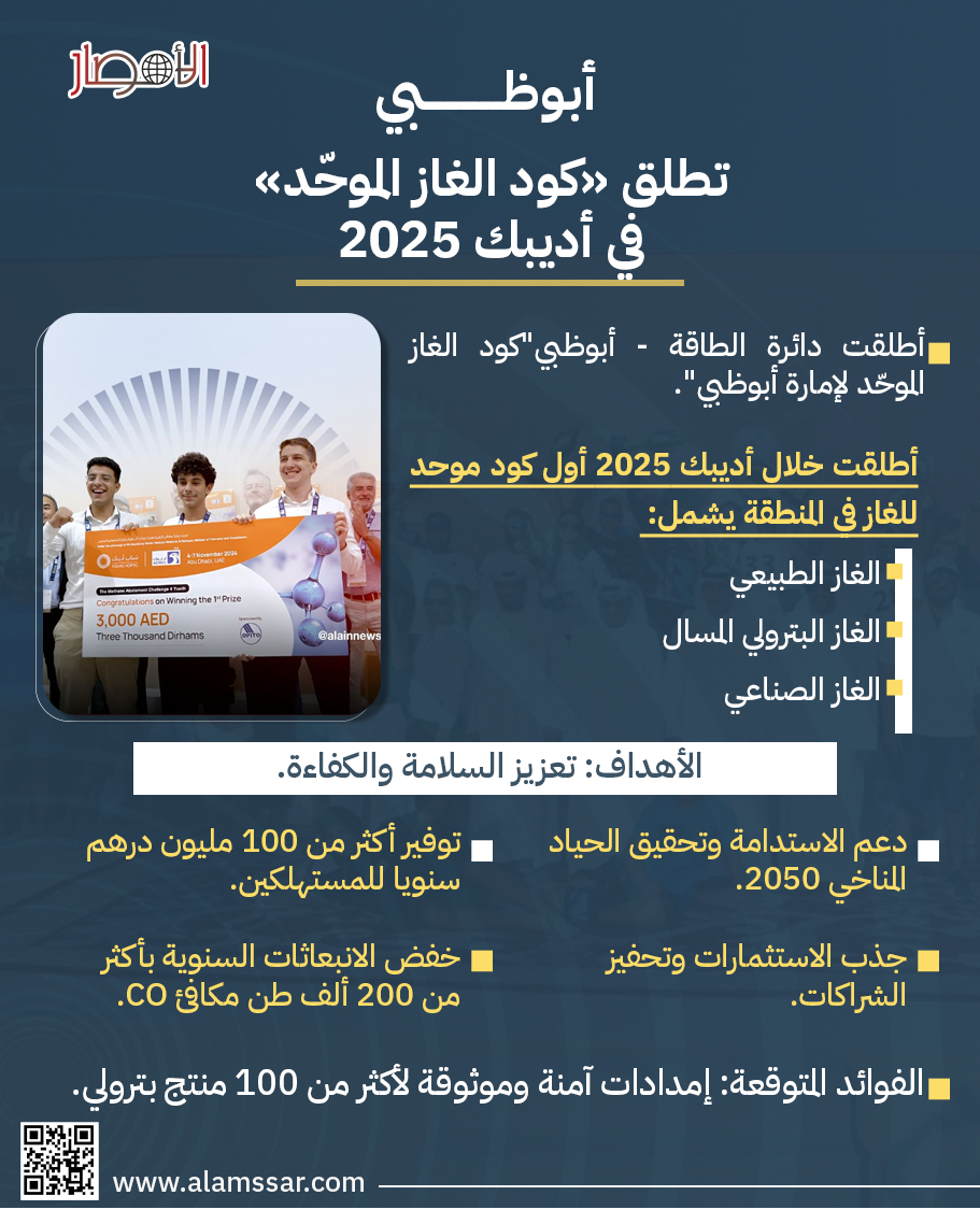 انفوجراف| أبوظبي تطلق «كود الغاز الموحّد» في أديبك 2025