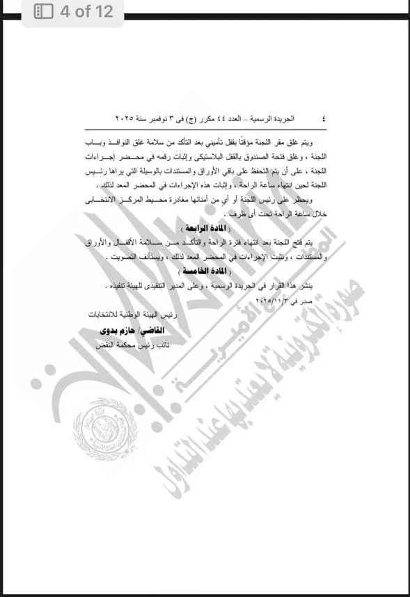 مصر.. الهيئة الوطنية تحدد قواعد وإجراءات ساعة الراحة بانتخابات مجلس النواب