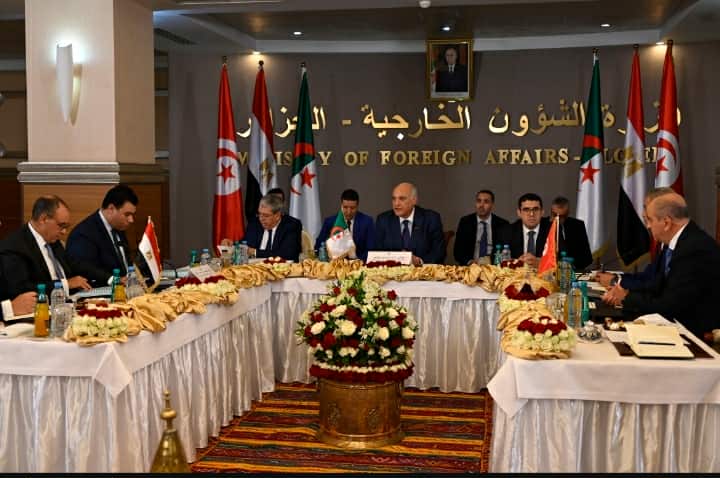 احتضنت الجزائر الاجتماع الوزاري لآلية دول الجوار الثلاثية بشأن الأزمة في ليبيا، اليوم الخميس، وذلك بمشاركة وزير الدولة، وزير الشؤون الخارجية والجالية الوطنية بالخارج والشؤون الإفريقية، أحمد عطاف، ووزير الخارجية والهجرة وشؤون المصريين بالخارج، بدر عبد العاطي، ووزير الشؤون الخارجية والهجرة والتونسيين بالخارج، محمد علي النفطي، حسب بيان للوزارة.