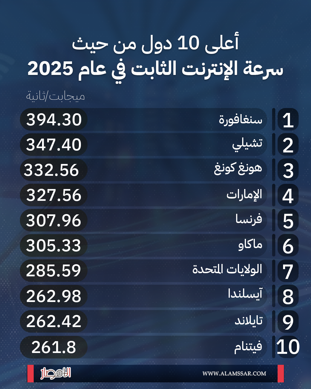أعلى 10 دول حول العالم من حيث سرعة الإنترنت الثابت في عام 2025