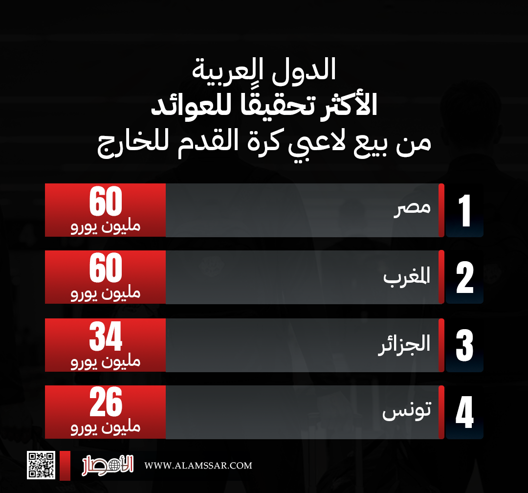 انفوجراف.. الدول العربية الأكثر تحقيقًا للعوائد من بيع لاعبي كرة القدم للخارج