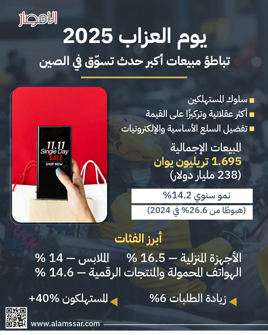 شهد "يوم العزاب" 2025 في الصين، وهو أكبر حدث تسوّق سنوي في العالم، تباطؤًا واضحًا في نمو المبيعات السنوية مقارنة بالعام الماضي، مع تغيرات ملحوظة في سلوك المستهلكين واهتمامهم بالقيمة العملية للمنتجات.