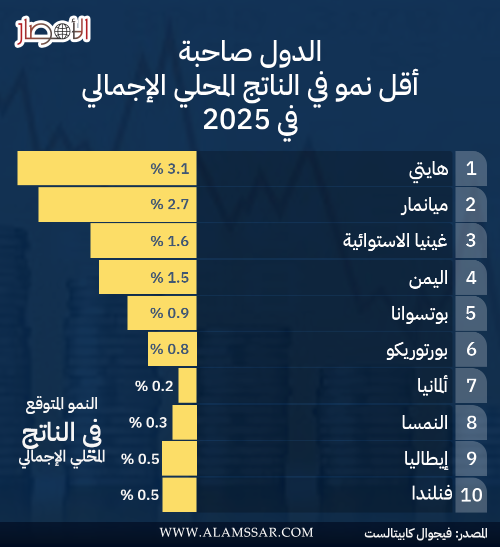 انفوجراف.. الدول صاحبة أقل نمو في الناتج المحلي الإجمالي خلال 2025