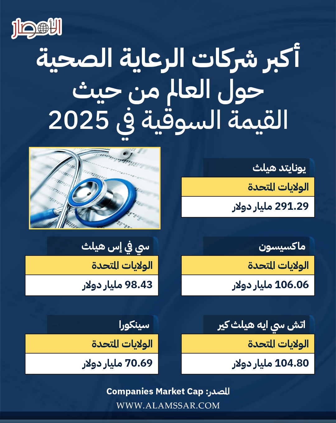 كانفوجراف/أكبر شركات الرعاية الصحية حول العالم من حيث القيمة السوقية في 2025