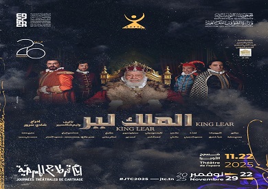 يفتتح العرض المسرحي المصري "الملك لير" مهرجان أيام قرطاج المسرحية، وذلك مساء 22 نوفمبر الجاري على مسرح دار الأوبرا بتونس، فيما يقام المهرجان في الفترة من 22 إلى 29 نوفمبر الجاري.