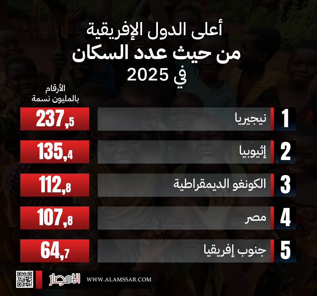 انفوجراف.. أعلى الدول الإفريقية من حيث عدد السكان في 2025