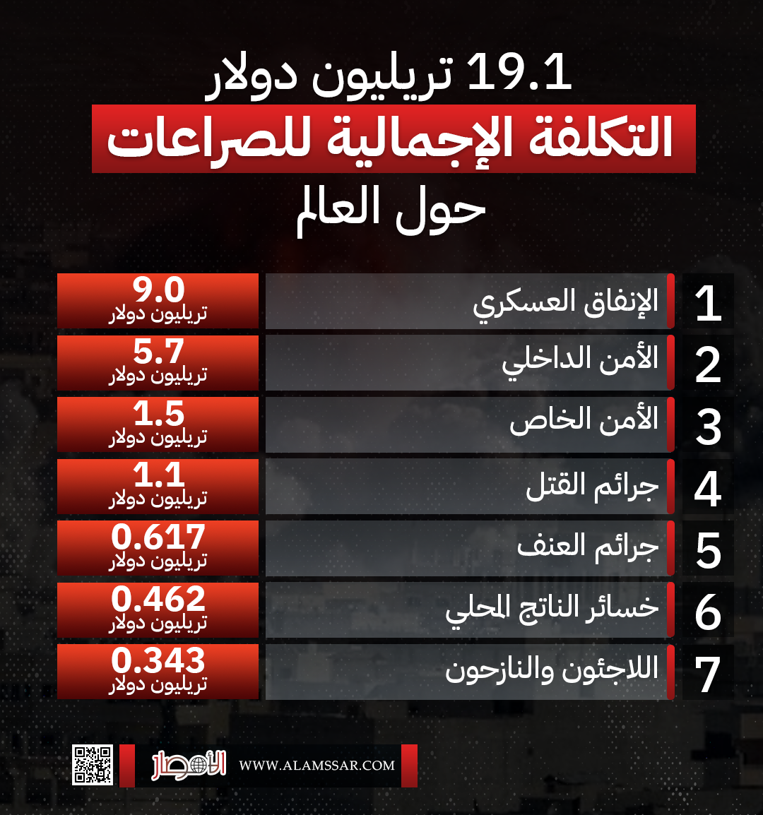 19.1 تريليون دولار التكلفة الإجمالية للصراعات حول العالم