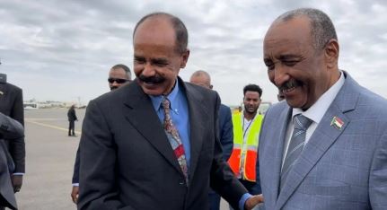 البرهان يستقبل رئيس إريتريا وسط تصاعد المعارك بالسودان