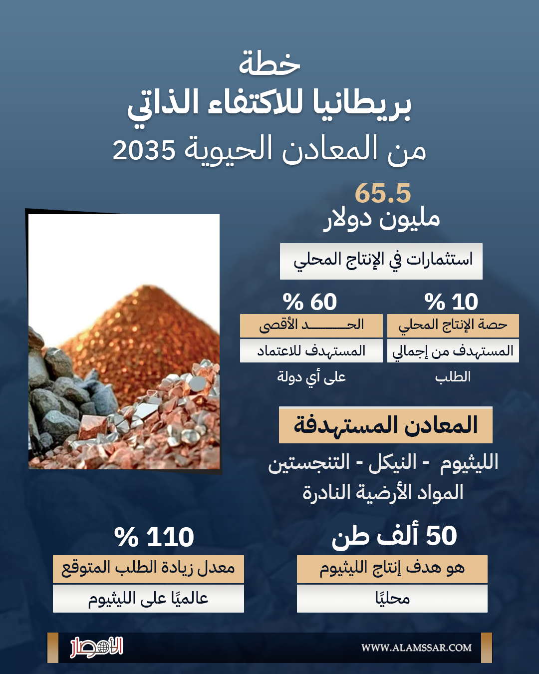 بالانفوجراف| خطة بريطانيا للاكتفاء الذاتي من المعادن الحيوية 2035