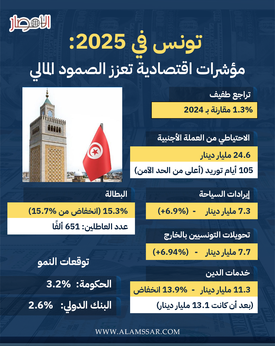 انفوجراف| تونس في 2025.. مؤشرات اقتصادية تعزز الصمود المالي