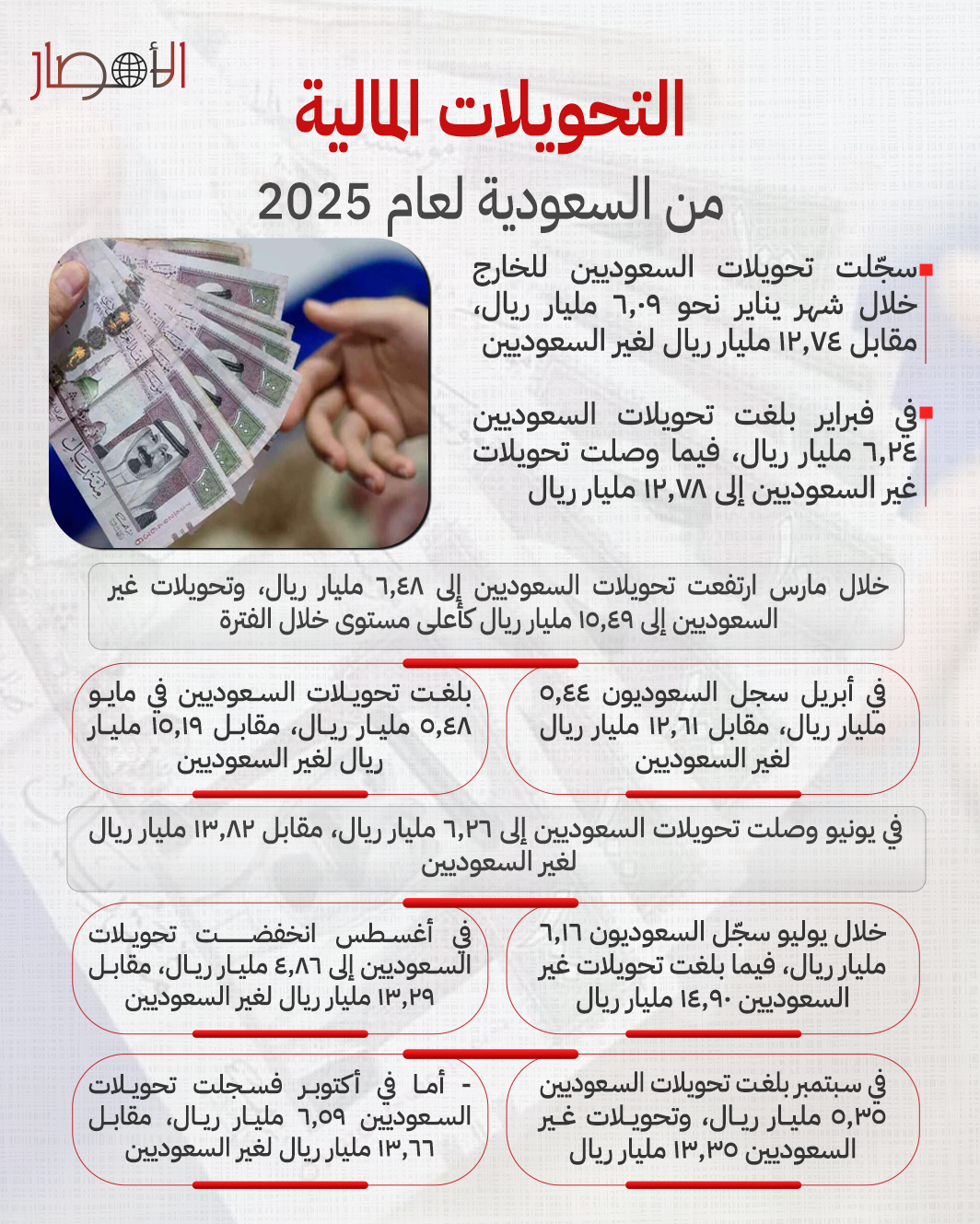 بالإنفوجراف| بالأرقام.. التحويلات المالية من السعودية لعام 2025