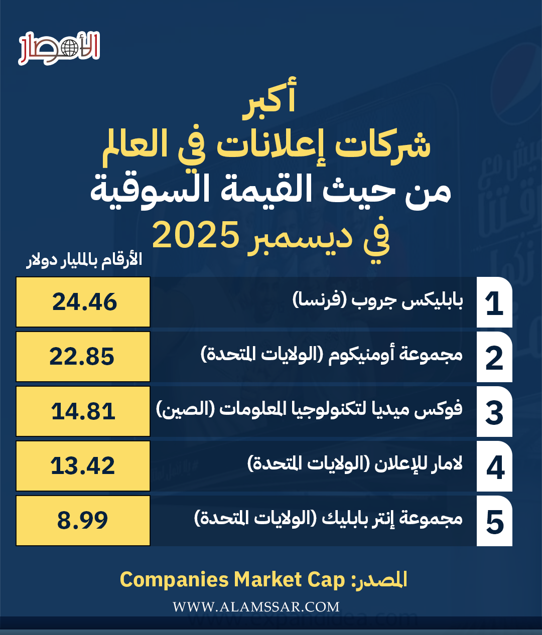 انفوجراف.. أكبر 5 شركات إعلانات في العالم من حيث القيمة السوقية خلال ديسمبر 2025
