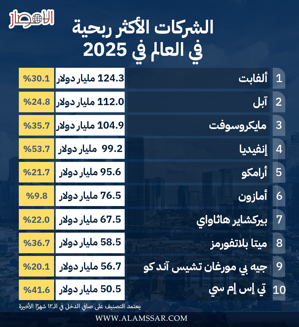 انفوجراف.. الشركات الأكثر ربحية في العالم في 2025