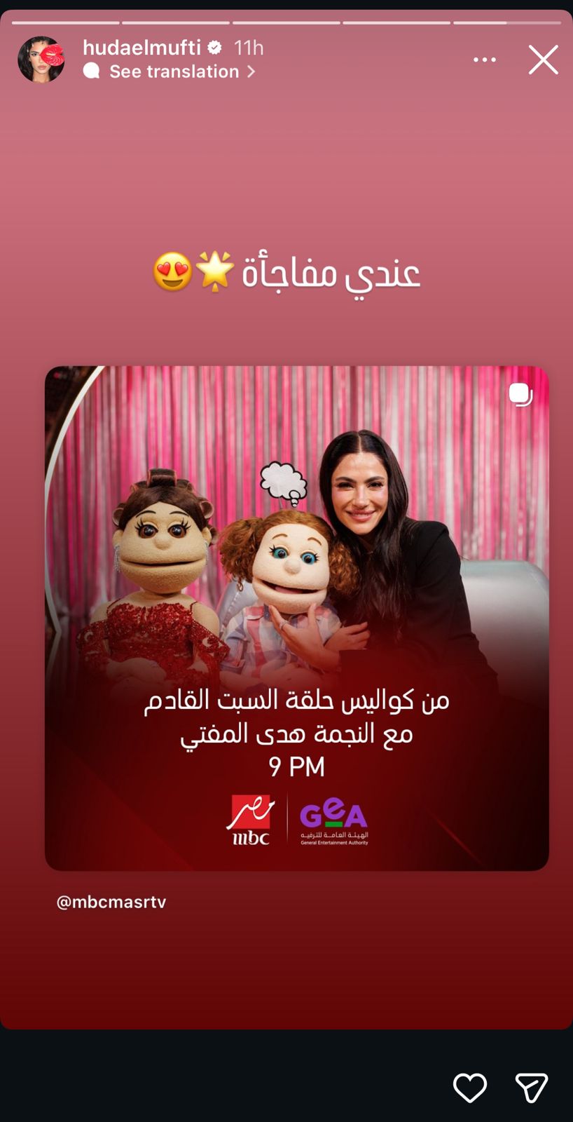 وشاركت هدى المفتي صورا من كواليس تصوير الحلقة، وكتبت: “عندي مفاجأة”.